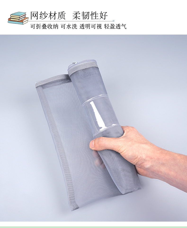 シマ(SIMPA)A 4網紗書類袋分類科目ジッパー袋資料収納ペーパーバッグ多機能バッグ学生文具灰色20213