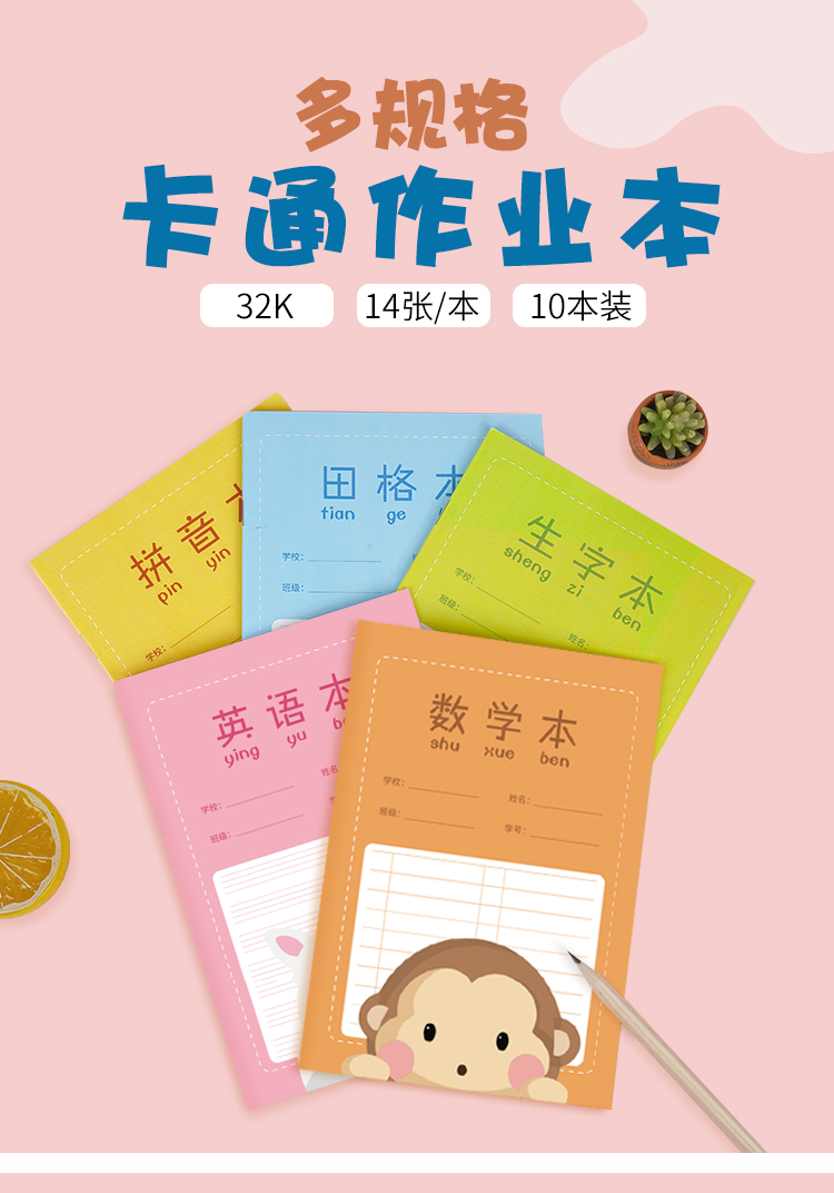 シマ(SIMPAA)10冊の小学生ピンインの宿題本中国語ピンインの練習ノートの文具は厚いアニメソフトの写本32 K/14枚のXQ 32 K 1をプラスします。