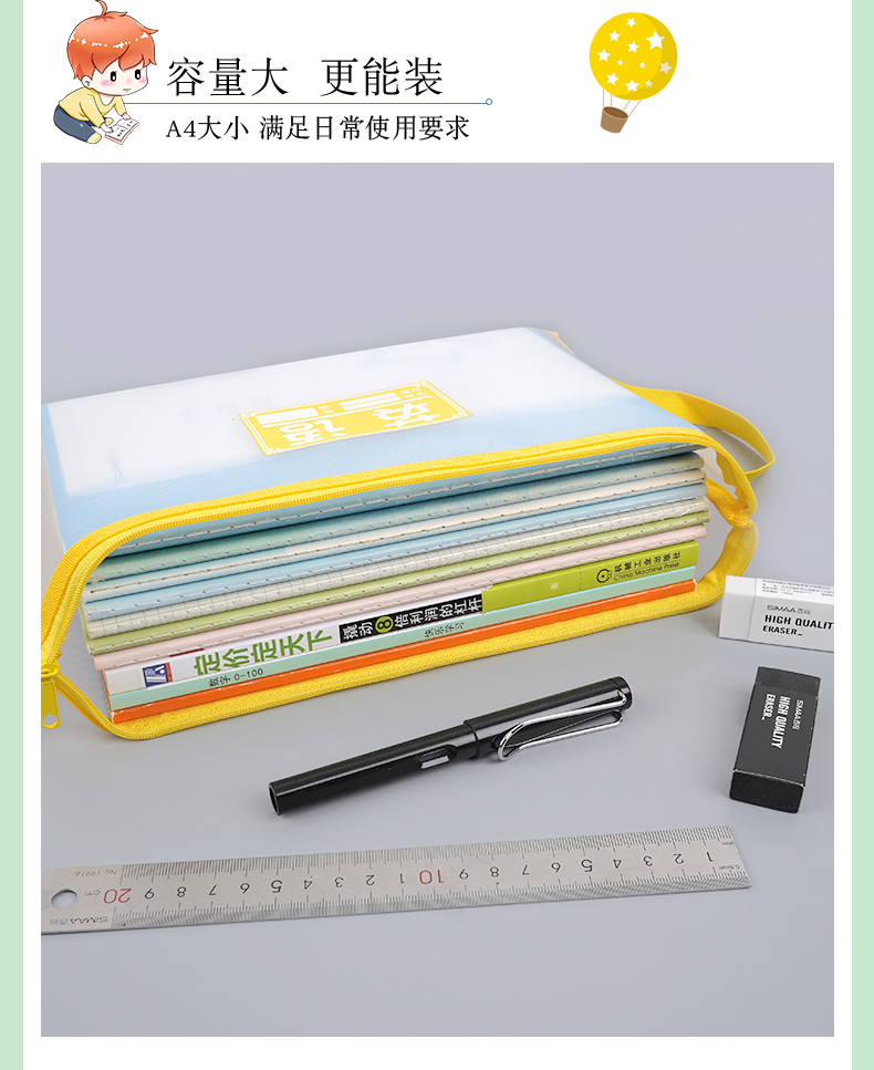シマ(SIMPA)A 4網紗科目袋分類ファイルジッパー袋資料収納ペーパーバッグ多機能袋学生文具英語20112